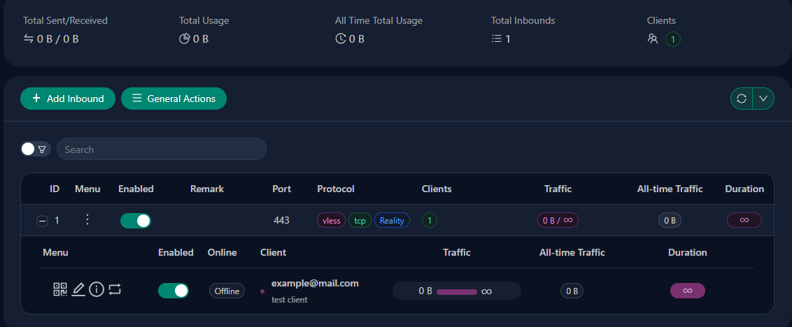 📡 InboundLa configurazione dell’ascoltatore lato server in Xray/3x-ui che definisce come i client si connettono, inclusi protocollo, porta, trasporto e impostazioni di sicurezza.